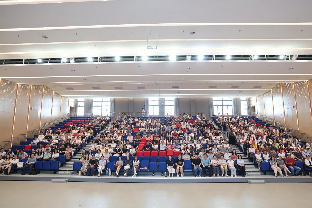 9 月 10 日下午,正值第 41 个教师节之际,上海市闵行区 2025 学年第一学期初中数学教研活动在各分会场同步拉开帷幕,其中六、七年级专场会议在上海交通大学附属闵行实验学校进行。闵行区初中数学教研员张胤睿、交大实验副校长朱诵玉莅临指导,全区 400 余名六、七年级数学教师齐聚一堂,共赴这场聚焦教学提质、赋能专业成长的教研活动。