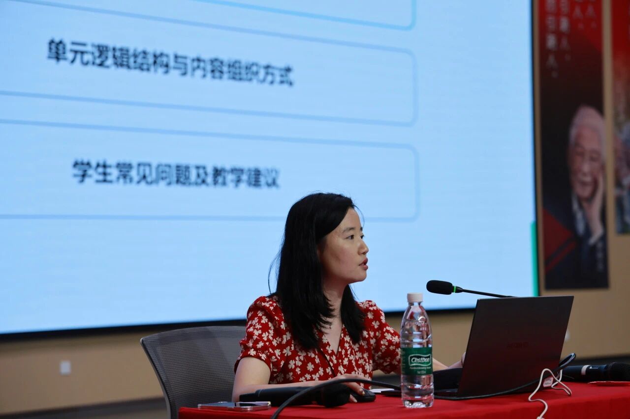 莘光学校团队:从 “大单元教学设计” 视角出发,分享新教材研读与教学实践经验。详细解读新教材中的学业要求与教学提示,新教材课程内容更紧凑、教学时间较以往缩减、学生数量持续增多,三者叠加给教学实施带来挑战。针对这一问题,团队提出具体解决方案:增加应用类课时、设计微型项目式学习任务、借助人工智能技术开展沉浸式实践教学等,为教师破解教学难题提供了可落地的操作路径。