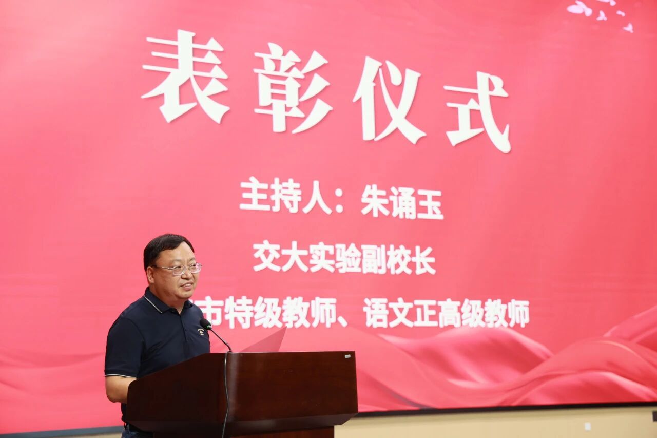 朱诵玉主持表彰仪式。他表示,希望荣获区级表彰和奖项的教师珍惜荣誉、发挥榜样的力量;希望全体教师不断探索、砥砺前行,为交大实验再争荣光。