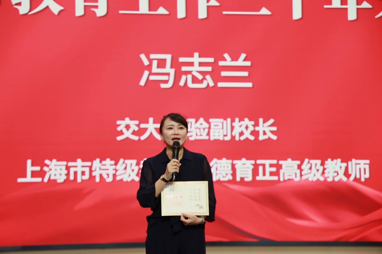 冯志兰荣获“从事教育工作三十年”荣誉证书,并分享育人心得。三十年来,她坚持用爱滋润学生的心灵,用青春涵养学生的品格,助力每一位学生成长成才。她表示,将继续秉持教育初心,恪尽职守,为培养更多优秀人才贡献力量。