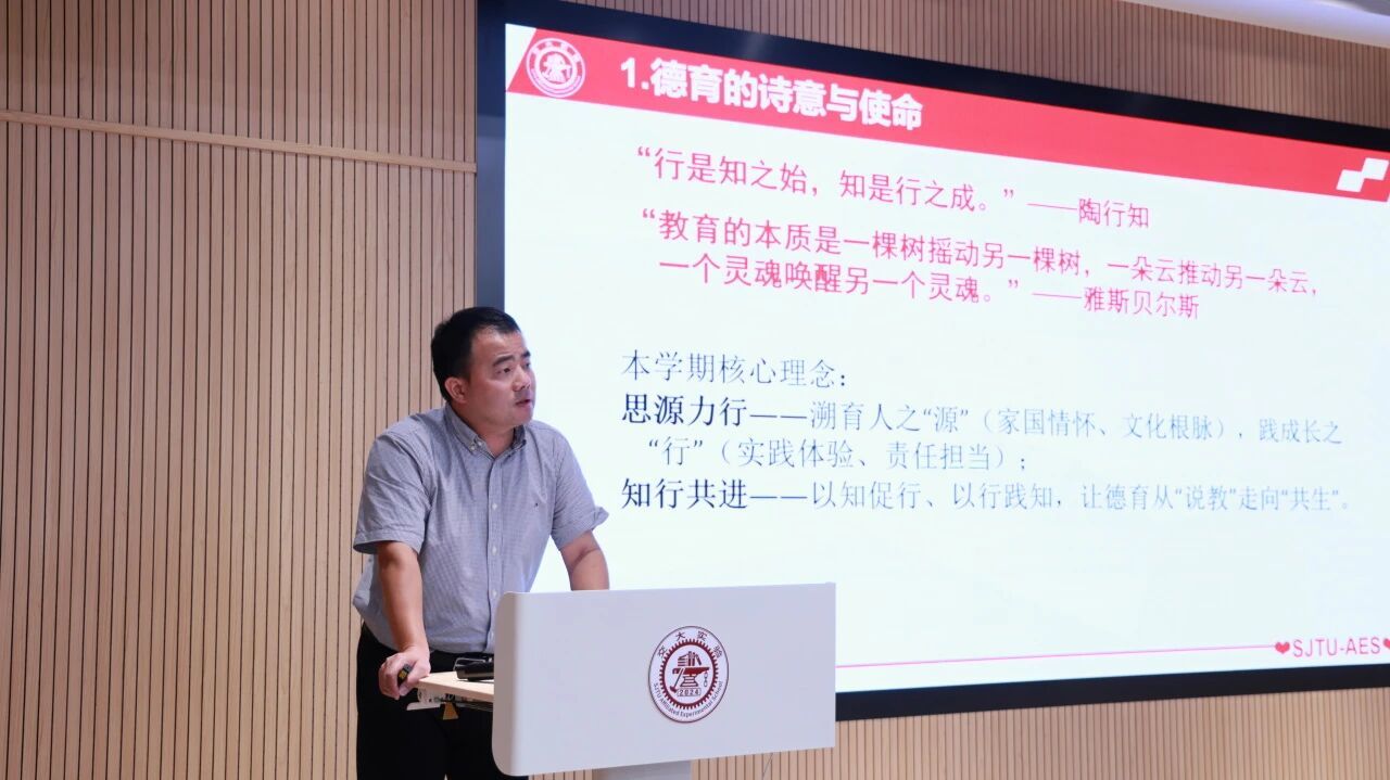 学生发展中心秦志强老师以“思源力行,知行共进”为主题解读新学期德育计划,推动德育从“说教”走向“共生”,计划以“立德铸魂,思想引领”为指导,遵循“循序渐进、贴近生活、协同联动”原则,采用“课程、实践、文化、管理、活动、协同”六大路径,依托“队伍、资源、文化”三大保障,推动工作落地,为学生成长护航。